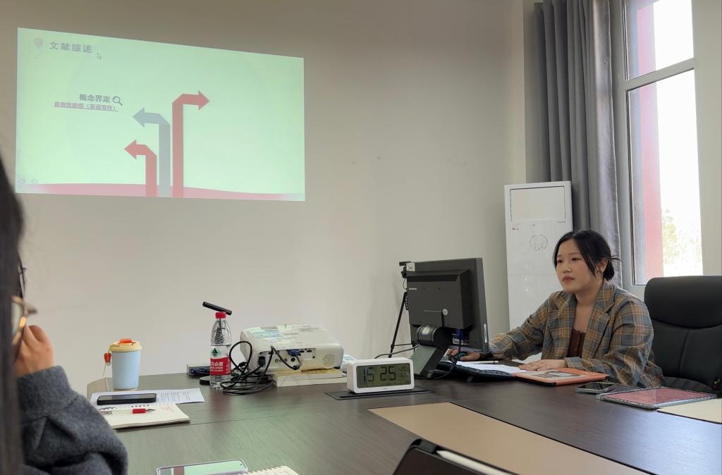 本次论坛由2023级的三位研究生作为主讲人。首先,冉雪糅同学就“高中生英语写作自我效能感的现状”作了研究报告,从“写作自我效能感”的定义及其影响因素等方面做出了阐释,并分享了她的研究设计。紧接着,陈兰同学以“基于主题语境对比分析英语词汇教学策略”为主题作了研究报告,并展示了问卷调查表及数据分析图表。随后,李晨同学就“基于试卷中语法选择及完形填空中语法的偏误分析”作了研究报告,她从理论基础、研究意义、研究方法等方面做出阐述,并对语法教学的优化提出建议。