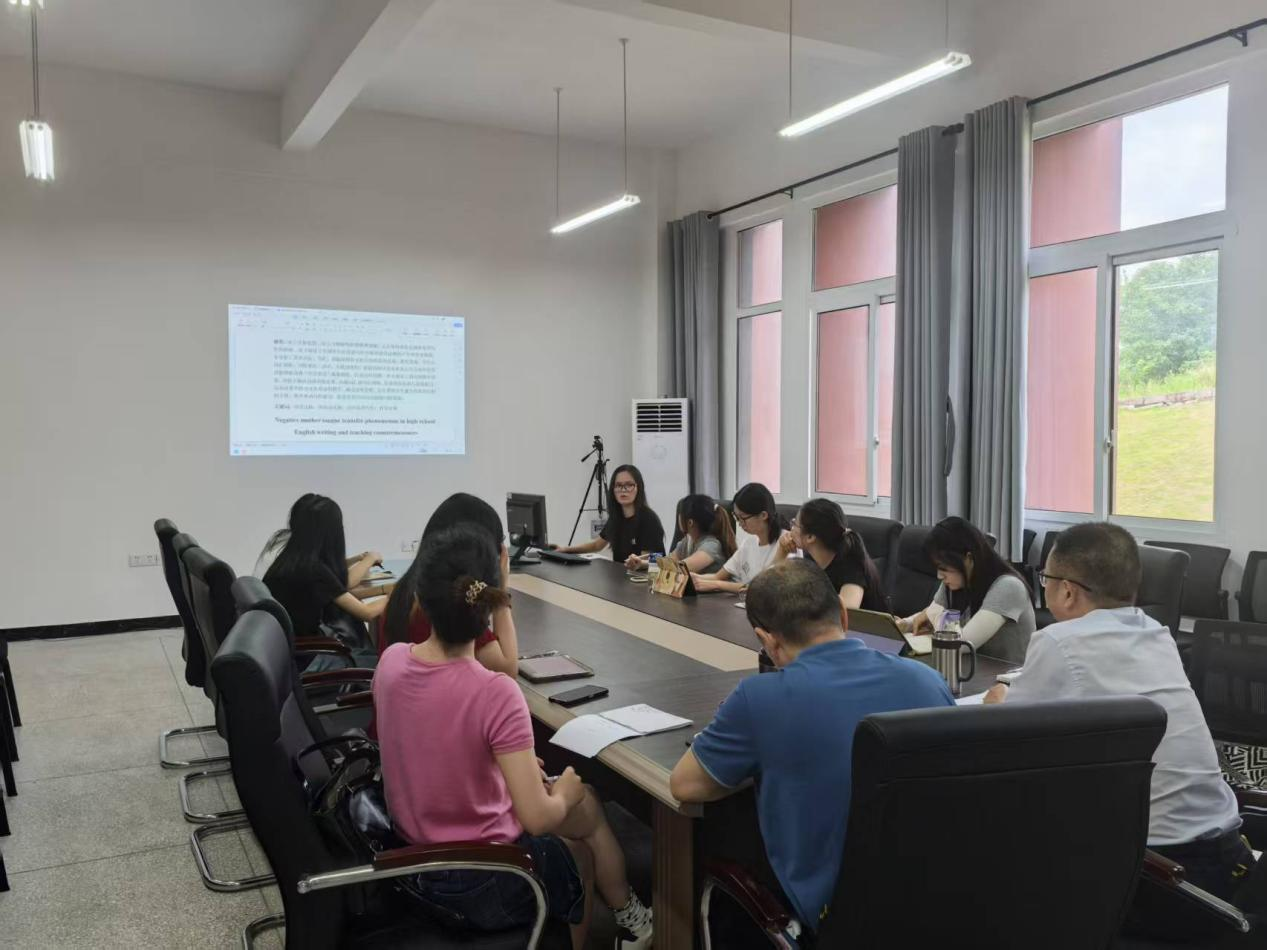 报告会上,蒋双霜率先发言,围绕中考英语,探讨了阅读试题内容效度问题,并提出优化策略;王倩聚焦课堂提问与学生参与度,结合课堂观察与问卷调查,分析不同提问方式对学生参与度的影响,并给出可行的教学建议;最后,郑祖燕针对母语负迁移在英语写作中的表现展开研究,并提出应对策略。汇报结束后,与会人员就汇报情况展开热烈的讨论与交流,导师们逐一进行评价,提出优化论文题目、完善理论基础和合理利用AI学术工具等建议。