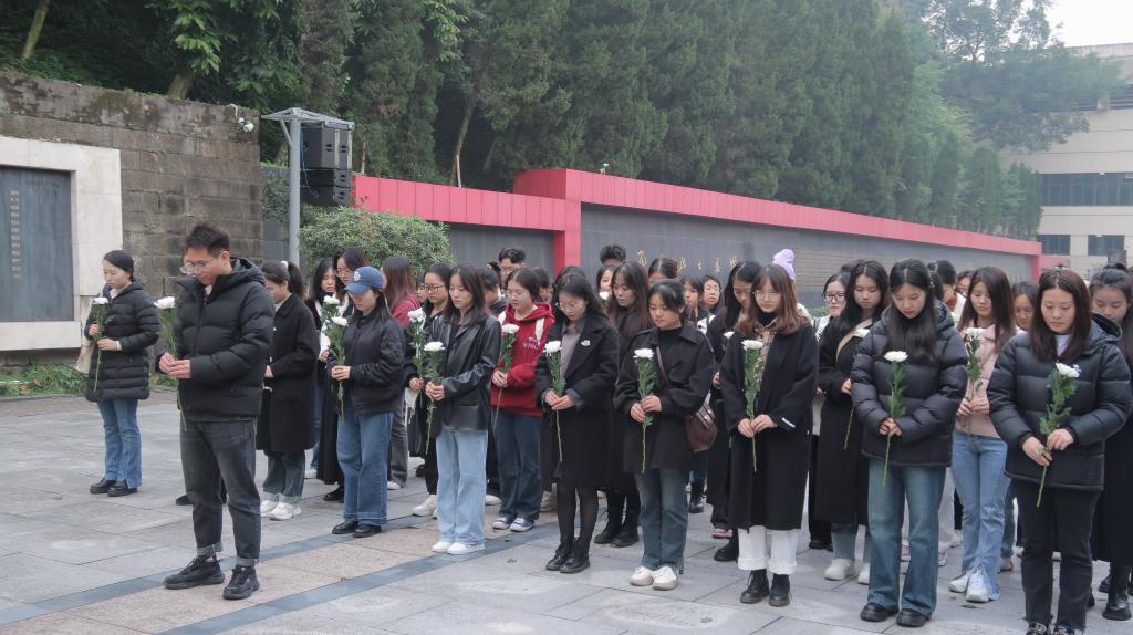 鲜花寄哀思,奋进慰英魂。在万州革命烈士陵园,2022级53名研究生党员、团员通过集体默哀、敬献鲜花等方式表达对英烈的沉痛哀悼和崇敬之情。在随风飘扬的国旗下,在“革命先烈永垂不朽”的纪念碑下,全体同学重温入团誓词,一句句铿锵有力的誓词提醒同学们要不忘初心,牢记使命。同学们还参观了烈士事迹陈列馆,陈列馆里的每一幅照片、每一件文物,都凝聚着那段峥嵘伟大的历史,让同学们对牺牲的英烈有了更深的敬仰。