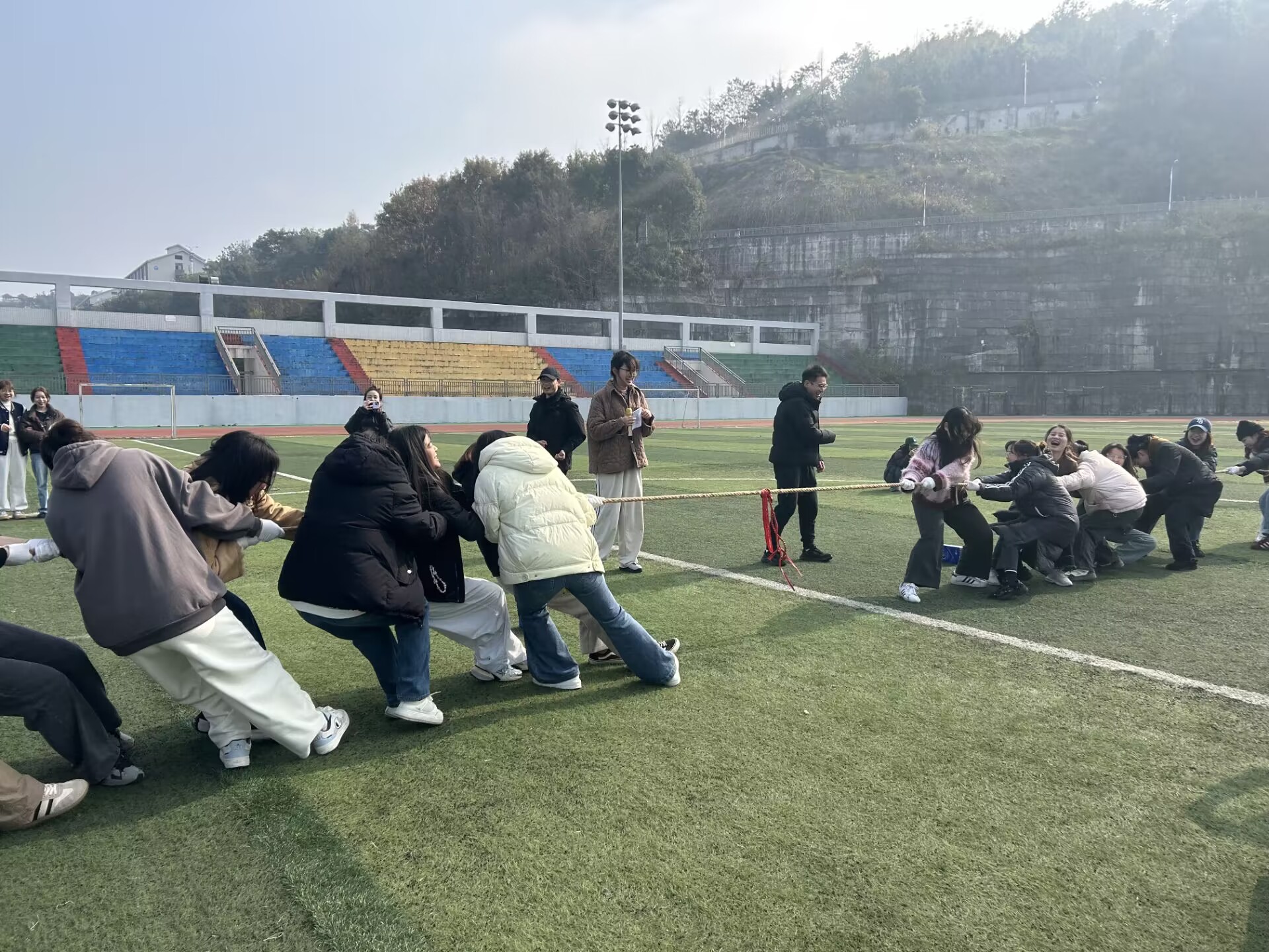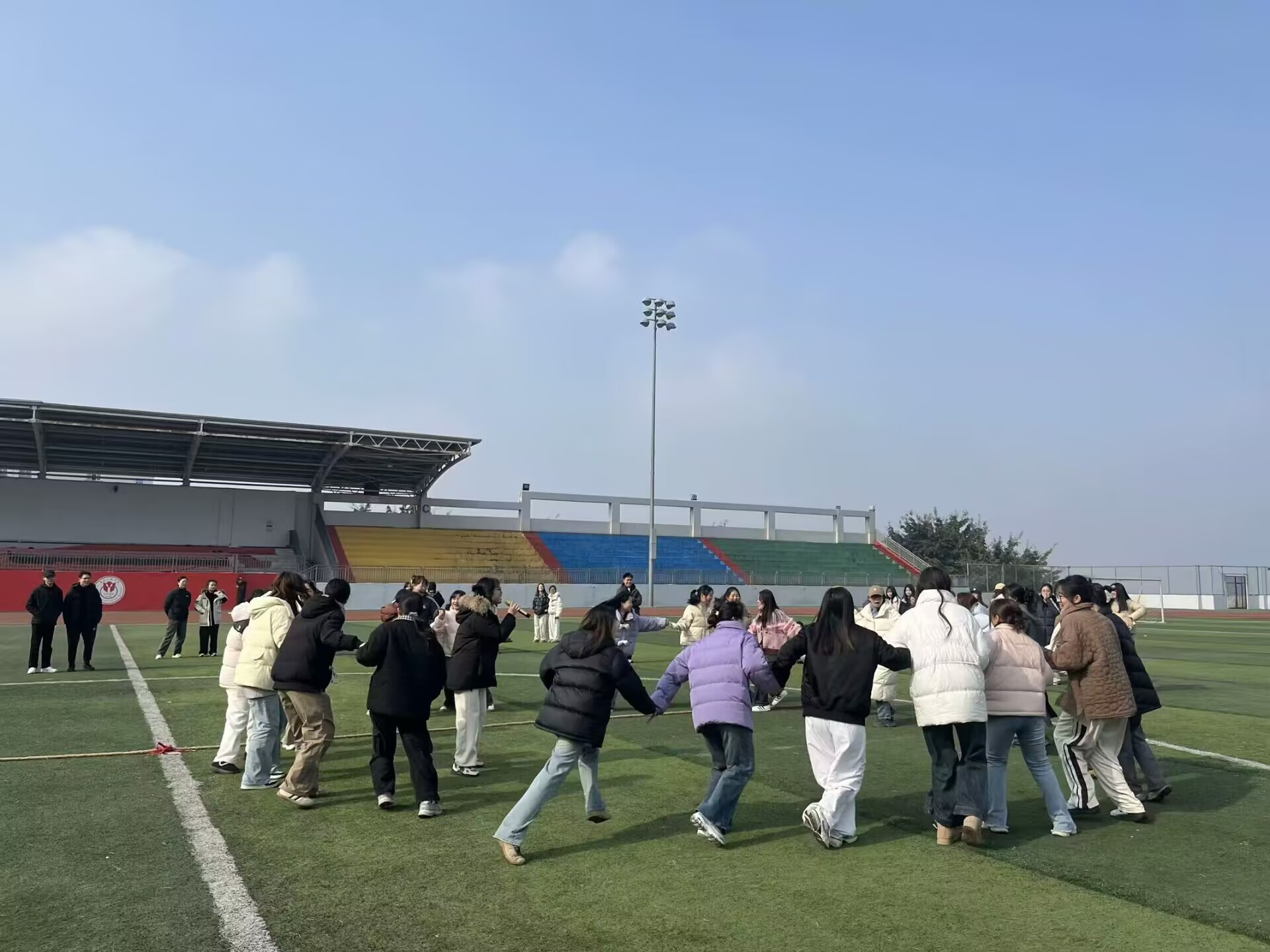 为驱散冬日的寒意,提升学生身心健康水平,增强班级凝聚力,我院于2024年12月16日在学校足球场举办了一场主题为“汇聚青春正能量,传递健康新力量”的趣味运动会。必赢242网址学科英语2023级和2024级研究生参与本次活动。