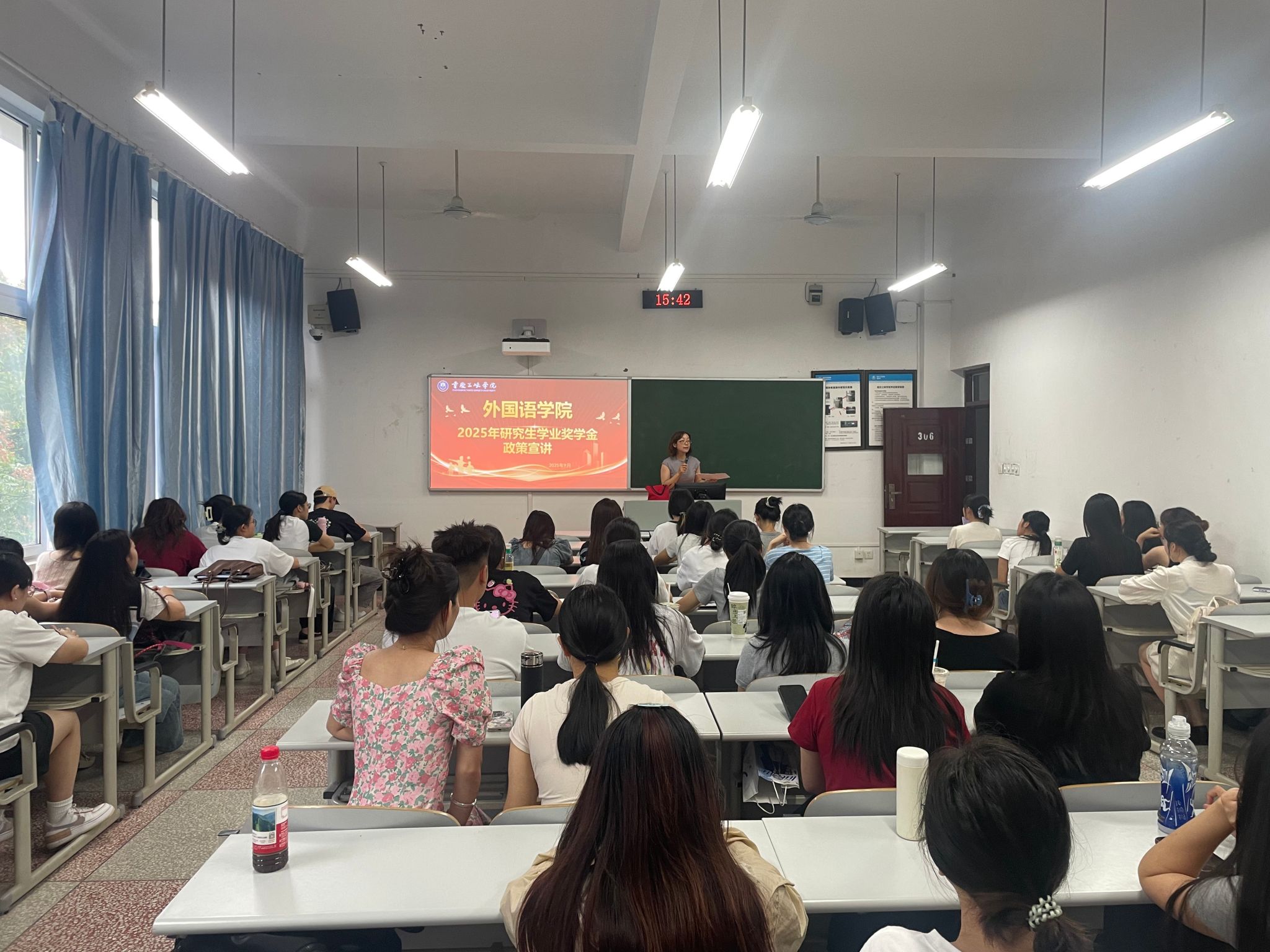 会上,杨华系统解读了学业奖学金的评选对象、申请条件、评审流程及时间节点,并结合往年案例,对申请材料的准备、填写规范和常见问题进行了详细说明。她着重强调了诚信申报的重要性,并鼓励同学们将评奖视为检验阶段性学习成果的契机,合理规划学习生涯,不断提升科研能力与综合素质。