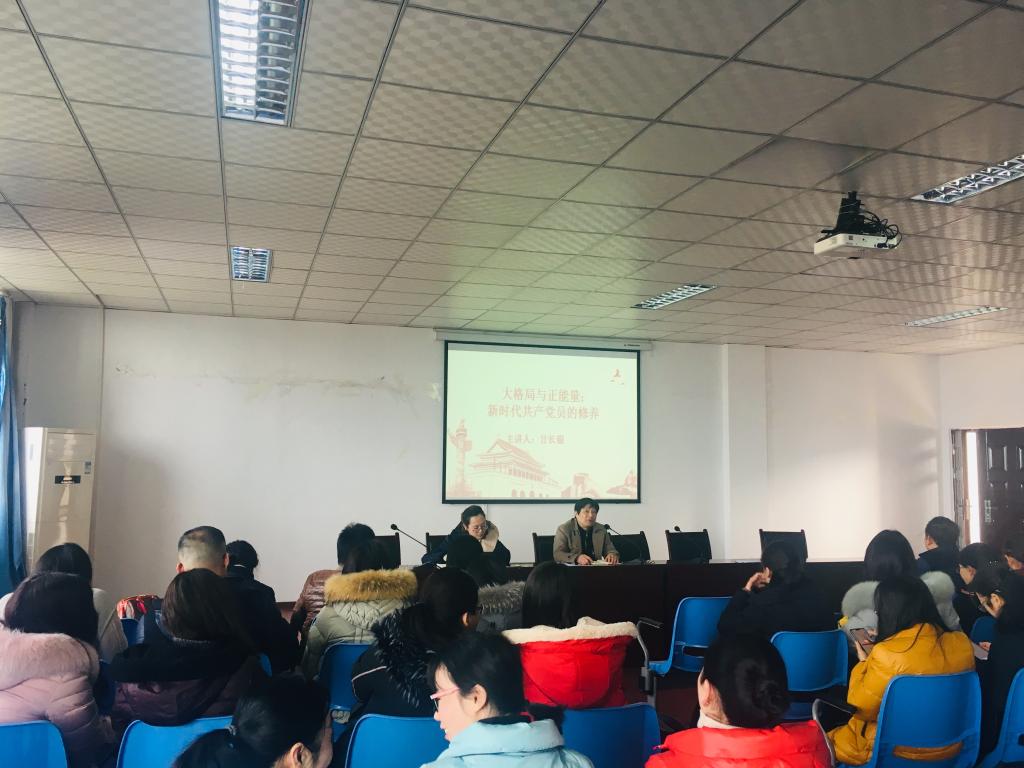 2019年2月24日下午14:30,必赢242网址党总支组织全院教师党员集体学习,党总支书记甘长银给全体党员上了一堂题为《大格局与正能量:新时代共产党员的修养》的党课。甘长银分别从共产党人需要大格局、社会需要正能量,以及如何提高个人格局、如何点燃并传递正能量等方面等方面阐述了在新时代如何加强共产党员的党性修养。