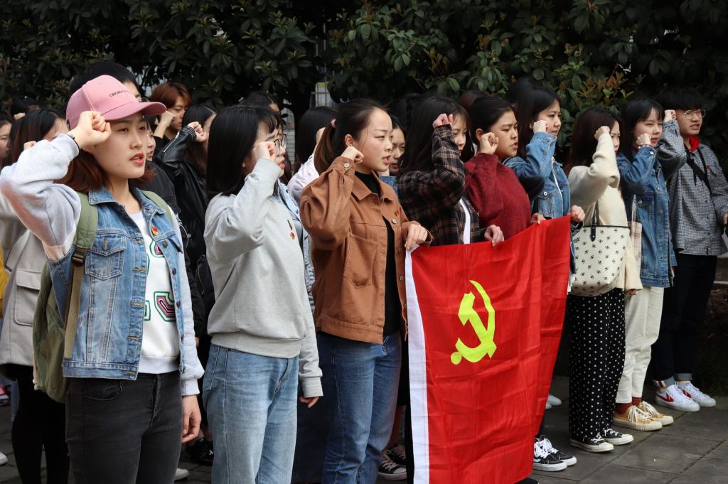 活动中,任老师向大家介绍了此次活动的目标及流程,并带领大家进行入党宣誓活动。毕业生党员张宁向大家宣读了《必赢242网址学生党员示范制实施办法(修订稿)》,并作为学生党员代表发言,表示作为学生党员要发挥好模范带头作用,要在思想、学习、工作、日常生活等各个方面中做好榜样。