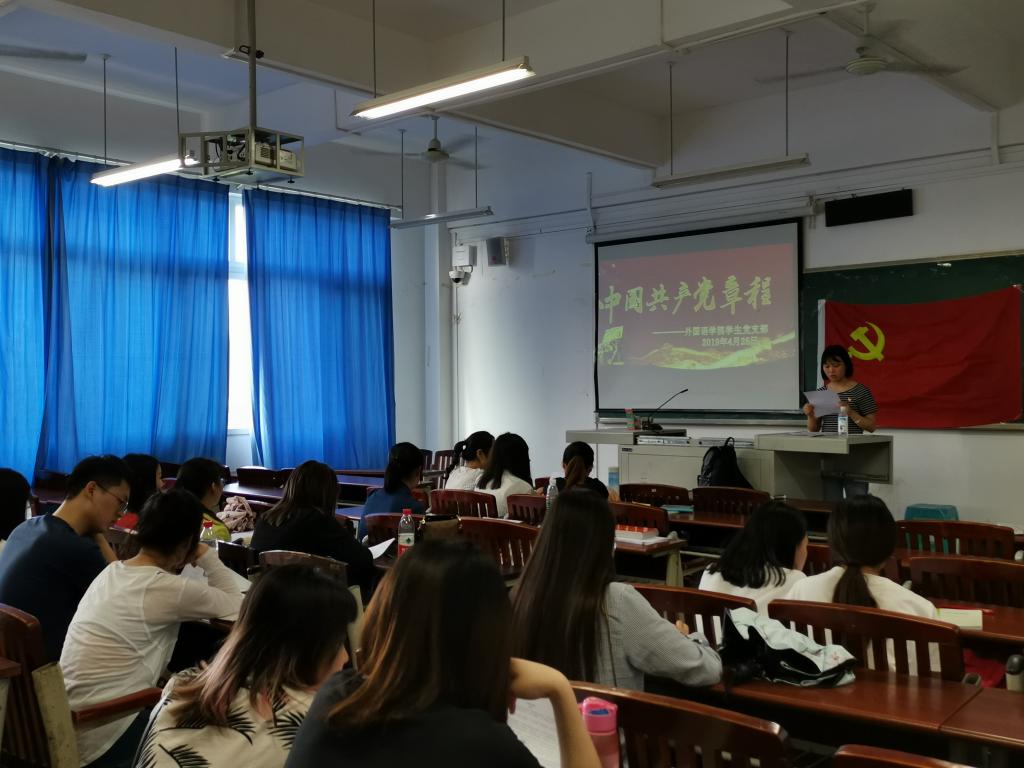 2019年4月25日16:20必赢242网址学生党支部在明辨楼1栋303教室开展党员大会,组织学生党员专题学习《中国共产党章程(修正案)》,会议由学生第一支部书记任红营老师主持,学生支部全体党员均参加会议。