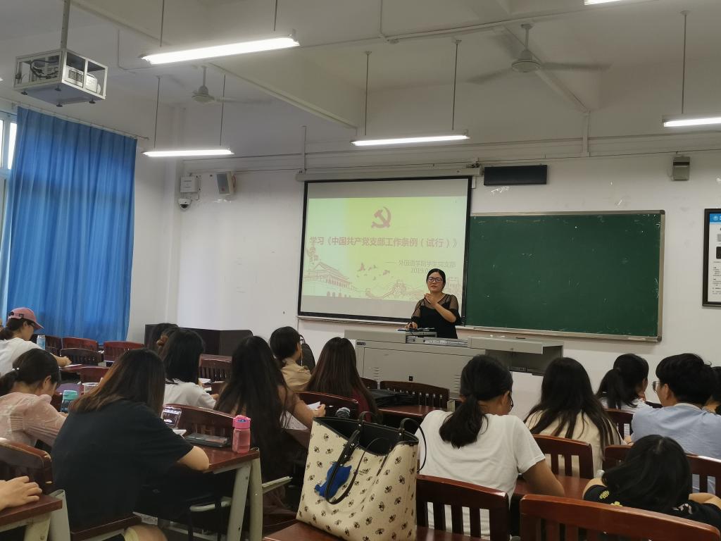 会上,任红营老师带领大家共同学习了《中国共产党支部工作条例(试行)》,重点学习了《条例》出台的背景及意义、各章重点解读部分以及贯彻和实践要求。任老师强调必须将《条例》要求作为推动组织工作落实规范党支部标准化建设的指南,进一步大力推进“三会一课”、主题党日、组织生活会、谈心谈话等党内组织生活规范化、经常化;同时《条例》的出台,体现了持之以恒推进全面从严治党的坚定决心,作为党员,我们应该弘扬正气,反对歪风,要严格执行党的纪律。