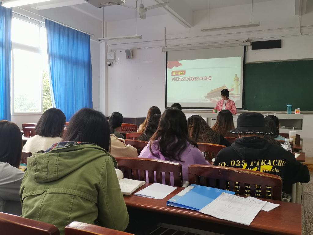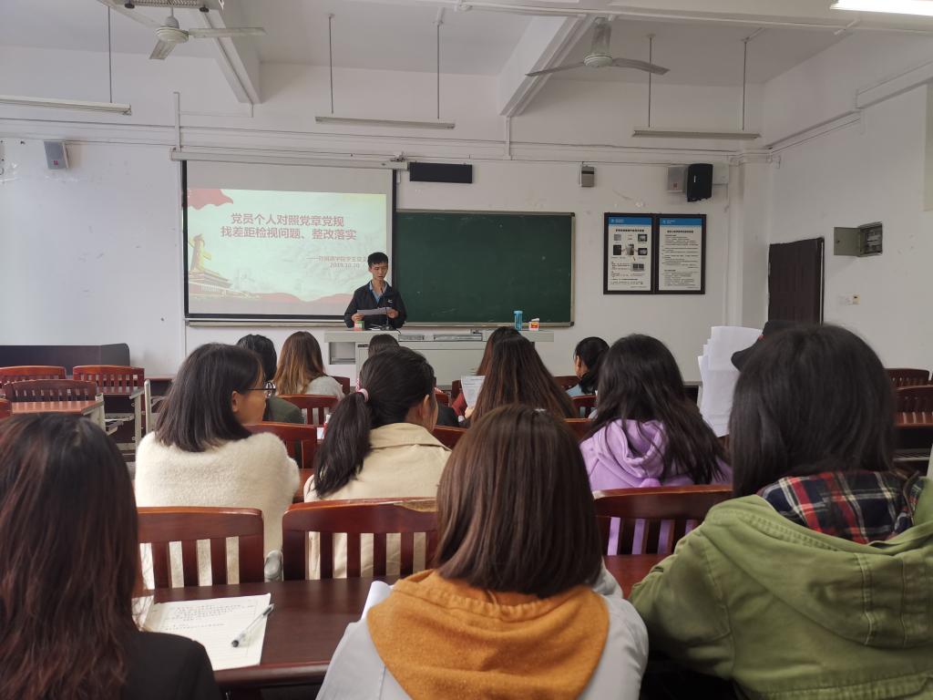 2019年10月18日15:30,必赢242网址学生党支部在明辨楼1栋306教室开展了主题党日活动,此次活动由学生二支部书记姚小辉老师主持,学生一支部、二支部全体党员参加。