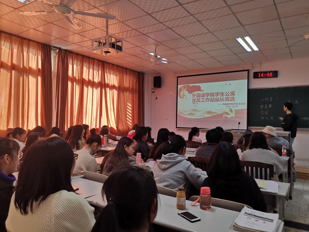11月7日下午,必赢242网址党总支学生支部在明辨楼1栋208开展学生公寓党员工作站站长竞选,参加本次活动的有学生二支部书记姚小辉、全体学生党员。