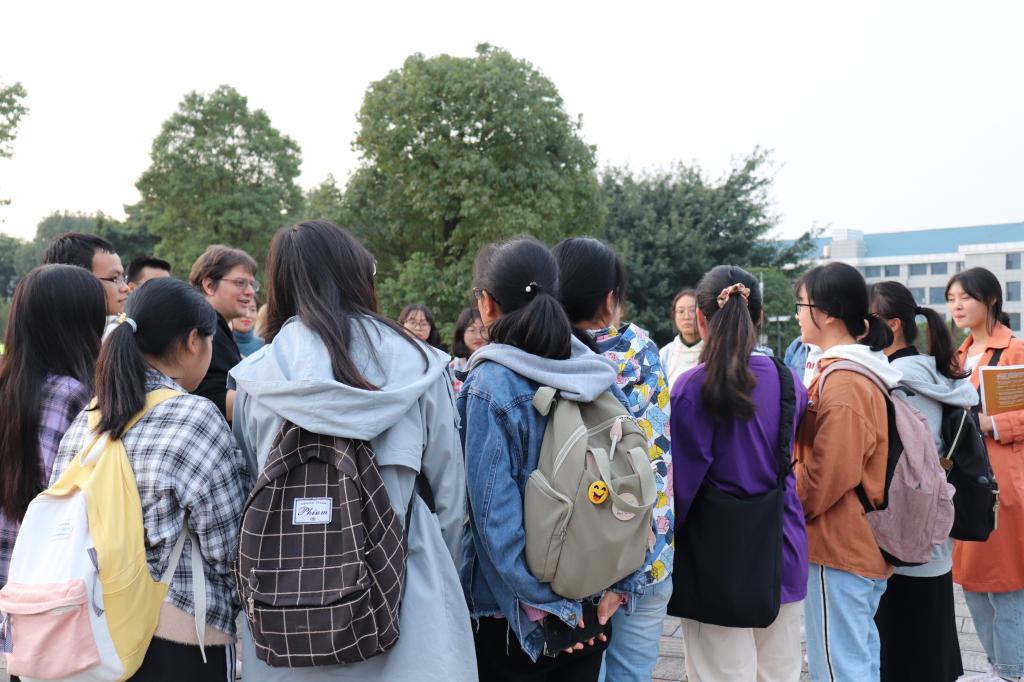 每周四下午4:30,党员教师们以及外教来到英语角的莲花广场、日语角的明辨楼1栋310等场所,指导全校外语爱好者们开展口语练习。