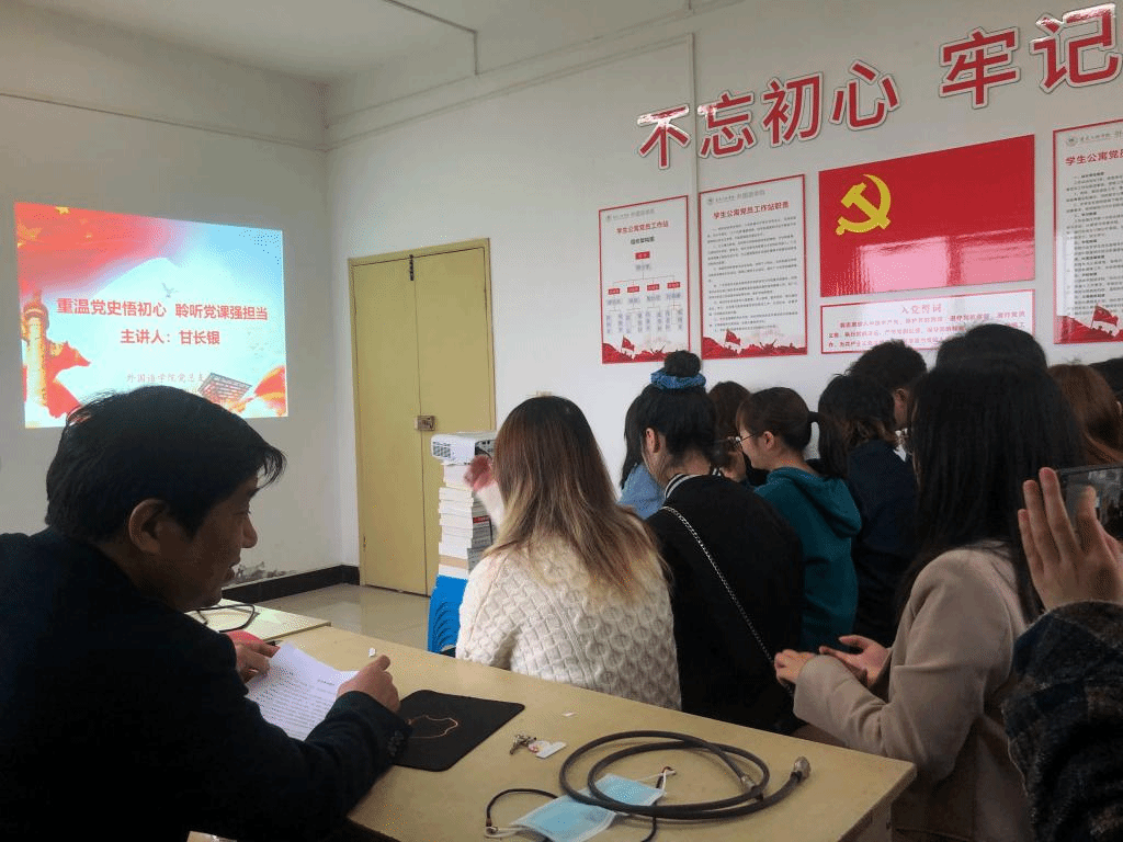 3月18日下午,在学生公寓党员工作站,学院党总支书记甘长银以《重温党史悟初心 聆听党课强担当》为题,为全体学生党员带来一堂生动精彩的党课。