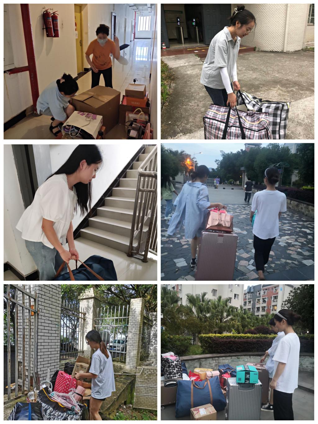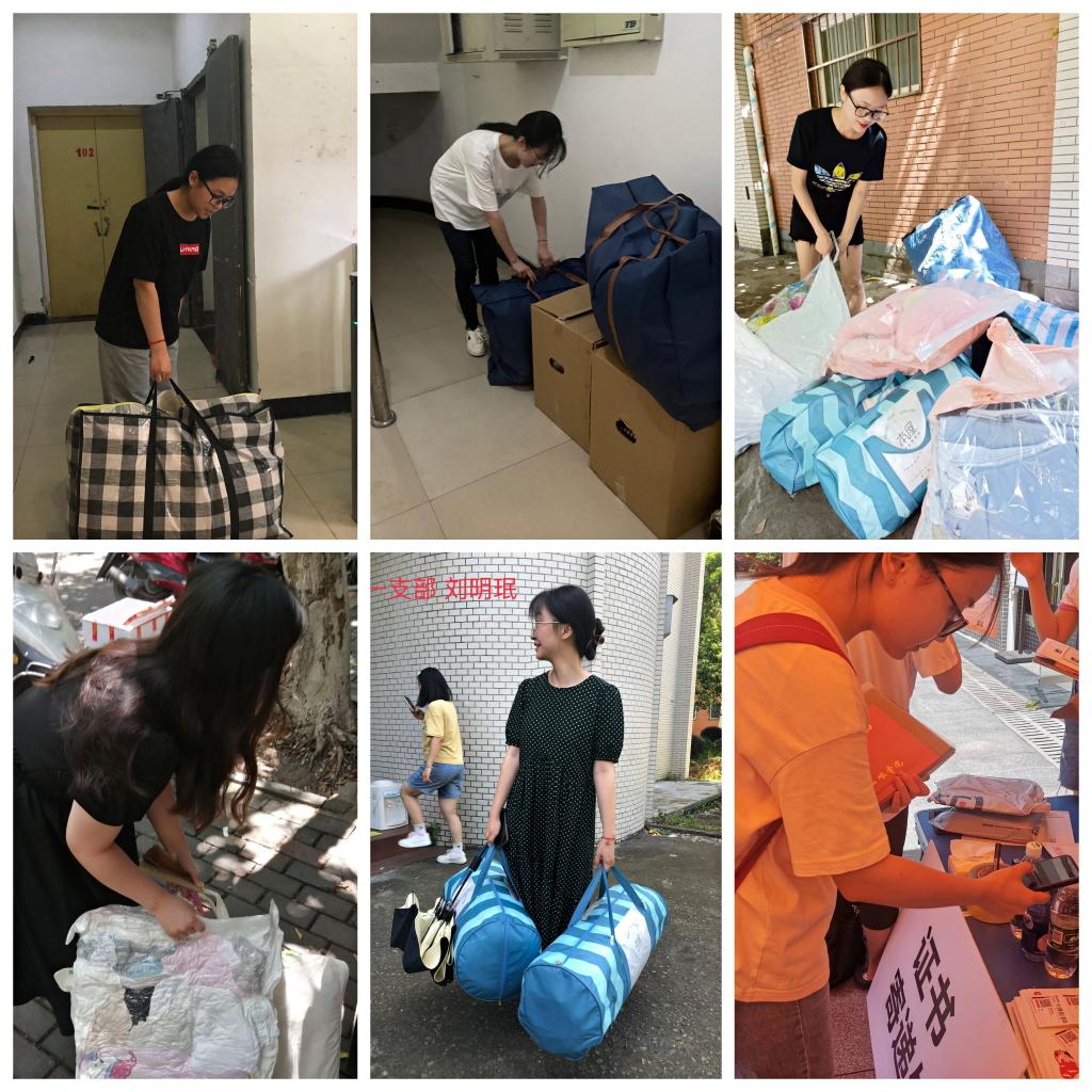 6月15日至25日,学生公寓党员工作站站长黄玉带领党员志愿者队伍,头顶烈日为学长学姐们打包行李、搬运、寄送等。大大小小的行李箱、汗水浸透的衣衫、离别的赠言,挥手间、拥抱中,多么生动感人的场面。