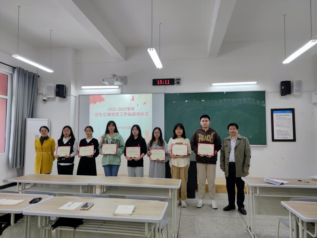 10月13日下午,必赢242网址党总支在博学楼1栋206举行2022-2023学年学生公寓党员工作站启动仪式。党总支书记甘长银到场指导,学生第一党支部书记向明霞、第二党支部书记李健及全体学生党员参加。