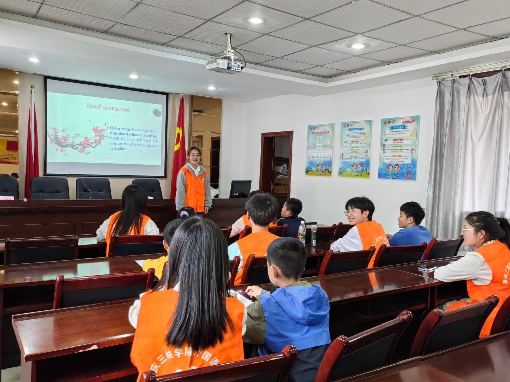 活动伊始,党员志愿者李小慧以“清明节”为主题,通过播放有关清明节的短视频,展示清明活动的图片,并教小朋友们读有关清明节的单词和短语,如“sweep tombs”、“fly kites”、“go for an outing”等,引导小朋友们了解清明节的传统习俗,在轻松愉快的氛围下学会有关清明节的英语表达。