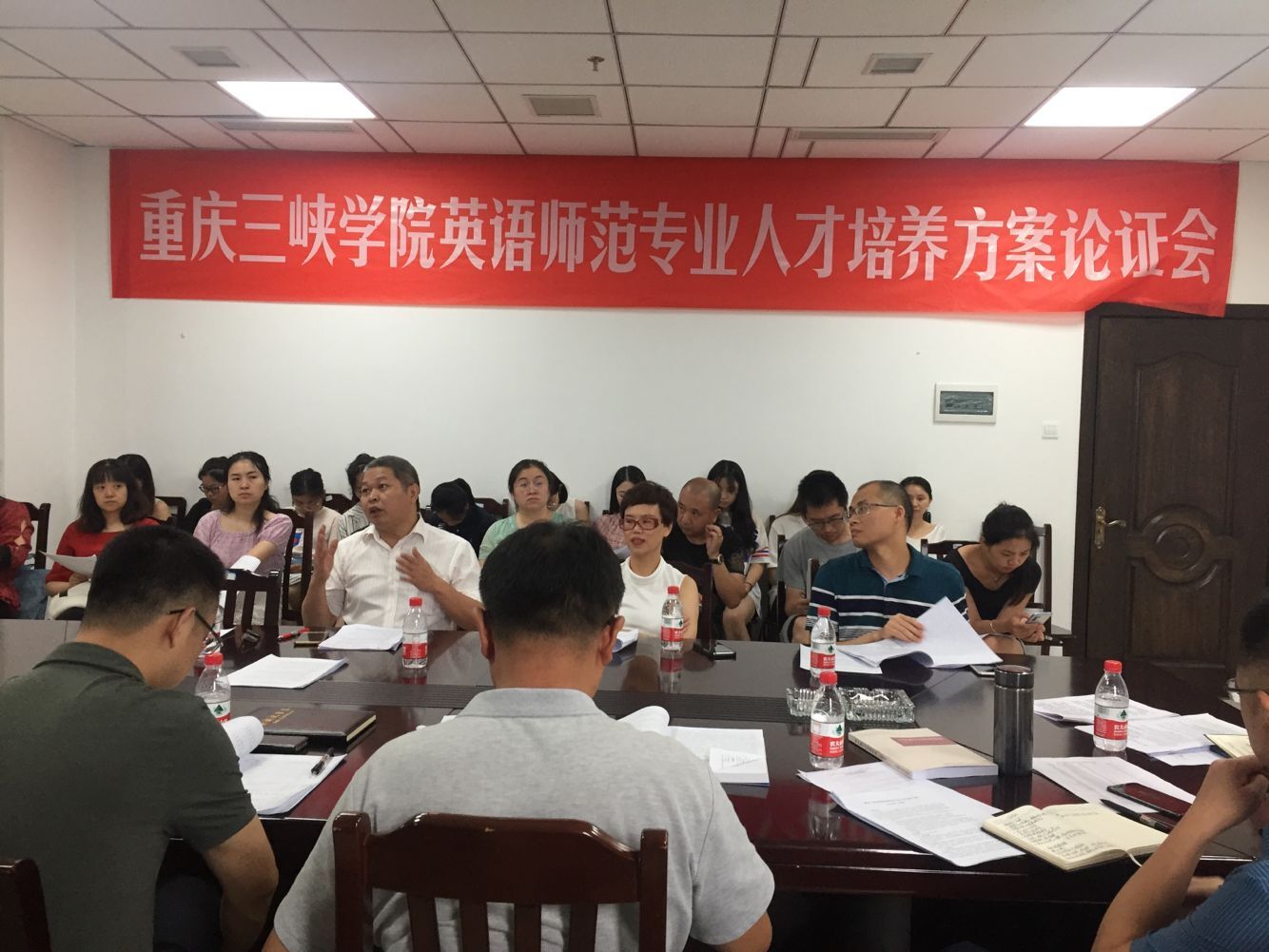 2019年6月24日下午2:30,我院在科技楼311会议室召开“英语师范专业人才培养方案论证会”。论证会由必赢242网址院长刘晓林教授主持,242nte官网教务处处长韩红宇教授、教务处副处长方刚教授、发展规划处副处长张晓东教授、教师教育学院院长潘勇教授、继续教育学院院长陈立万教授等5名高校教育专家,万二中高级教师许传俊作为基础教育专家代表、万州上海中学高级教师昌莉作为用人单位代表,以及校内教师代表、家长代表、师范毕业生及在校师范生代表,共计40余人参加了本次论证会。