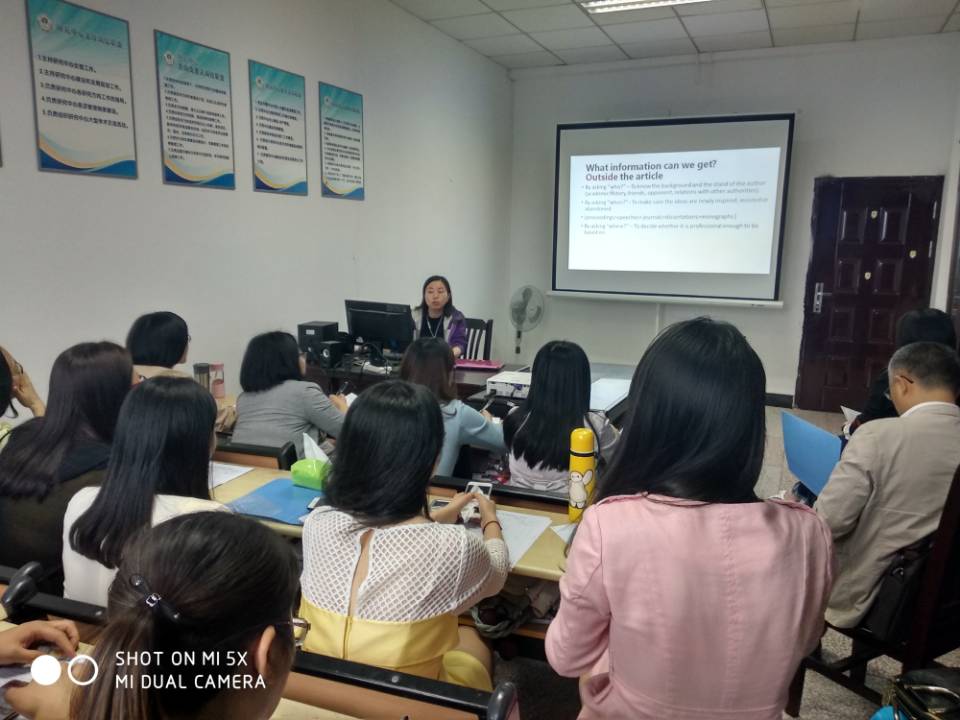 2018年5月10日下午3:00,英语系全体教师在1教317教室举行了本学期第二次系部主题教研活动,肖祎博士为全体教师做了《文献阅读与整理》的主题讲座。