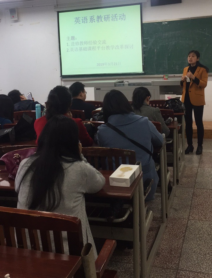 2019年3月21日下午2:30,英语系全体教师在明辨1-303教室召开了本新学期第一次主题教研活动,会议由英语系系主任乔春华老师主持。