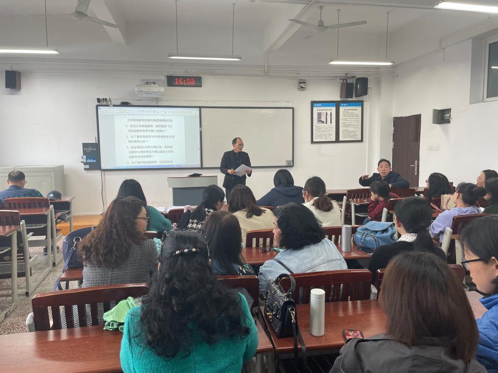 本次会议主要涵盖了四个方面的内容。首先,吴卞老师就上期教研部经费的使用情况做了说明。接下来,胡平副主任就上期期末考试试卷复查发现的问题做了通报并提出了整改意见。胡平还通报了“外教社杯”词达人比赛的相关情况。此后,梁福江主任带全体教师仔细学习了我校即将实施的《大学英语教学改革方案》的具体内容,对文件精神进行了解读,并组织全体老师就方案实施细则等具体情况展开充分的讨论。最后,学院分管领导唐淑华副院长作了总结发言,要求全体教师利用此轮教改契机转变教学观念,提升教学效果,为我校大学英语教学上一个新的台阶而努力。